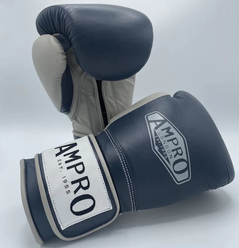 AMPRO Hybrid Powertech Hook and Loop Sparring Glove – Navy/Grey – Sparring / Bag / Spar / Boxing