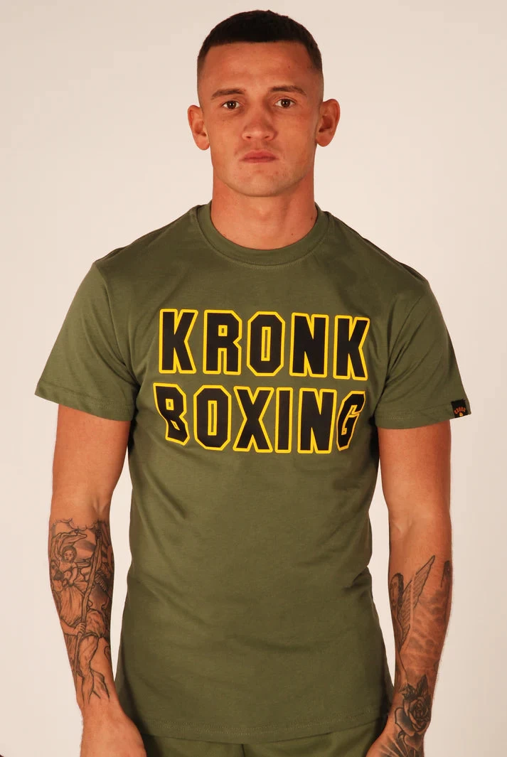 Men’s KRONK BOXING printed T shirt with chest print.